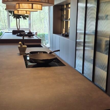 Diese Ausstellungsküche wurde in Hannover präsentiert und zeigt aktuelle Entwicklungen im Bereich stilvoller Designküchen. Die Kombination aus klaren Linien und dezenter Farbgebung sorgt für ein zeitloses und hochwertiges Gesamtbild.