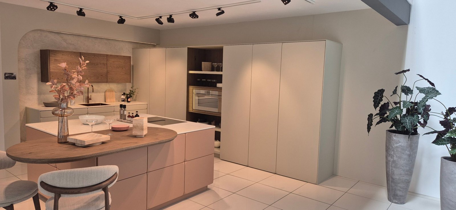 Diese Ausstellungsküche wurde in Hannover präsentiert und zeigt aktuelle Trends im Premium-Küchendesign. Die Kombination aus Ästhetik und Funktionalität sorgt für ein harmonisches Gesamtbild und höchsten Komfort im Alltag.
