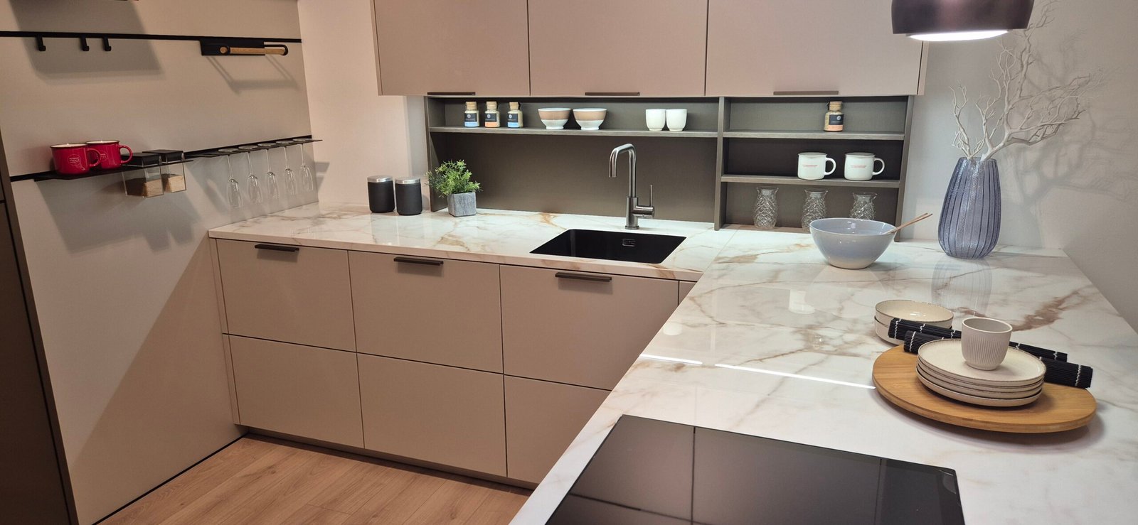 Moderne Ballerina Ausstellungsküche K14. Hochwertiges Design, präzise Verarbeitung und elegante Linienführung – ideal für exklusive Küchen in Hannover und Laatzen.