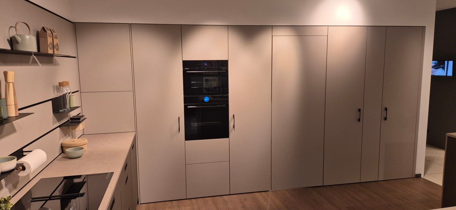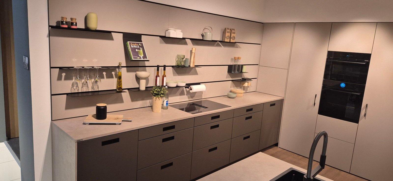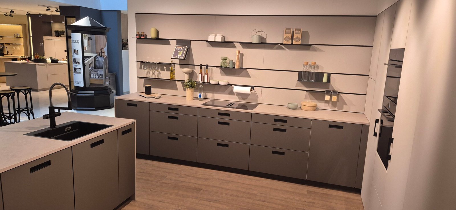 Diese Ausstellungsküche wurde in Hannover präsentiert und zeigt aktuelle Trends im Premium-Küchendesign. Die Kombination aus moderner Ästhetik und funktionalen Details schafft eine perfekte Balance zwischen Design und Alltagstauglichkeit.
