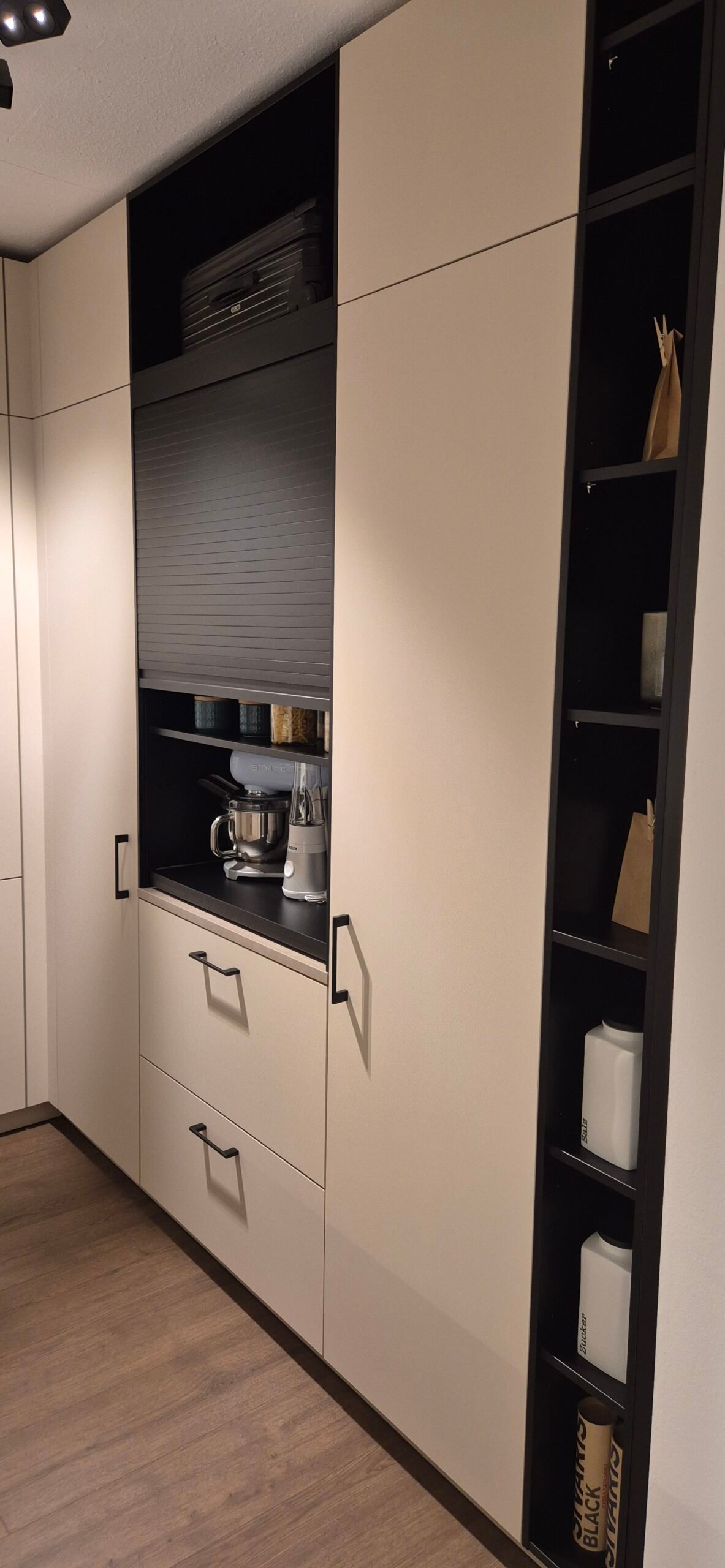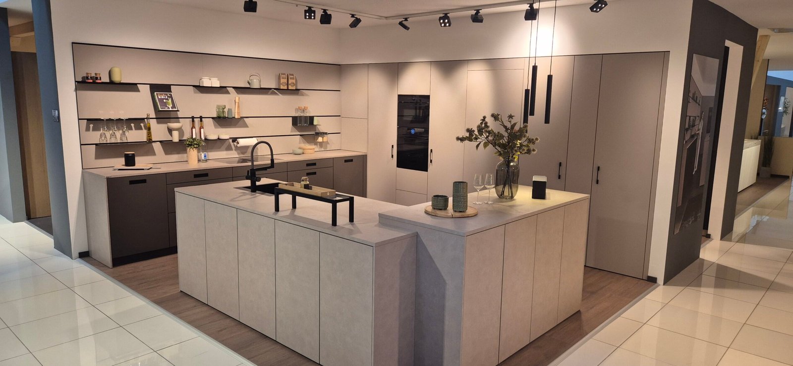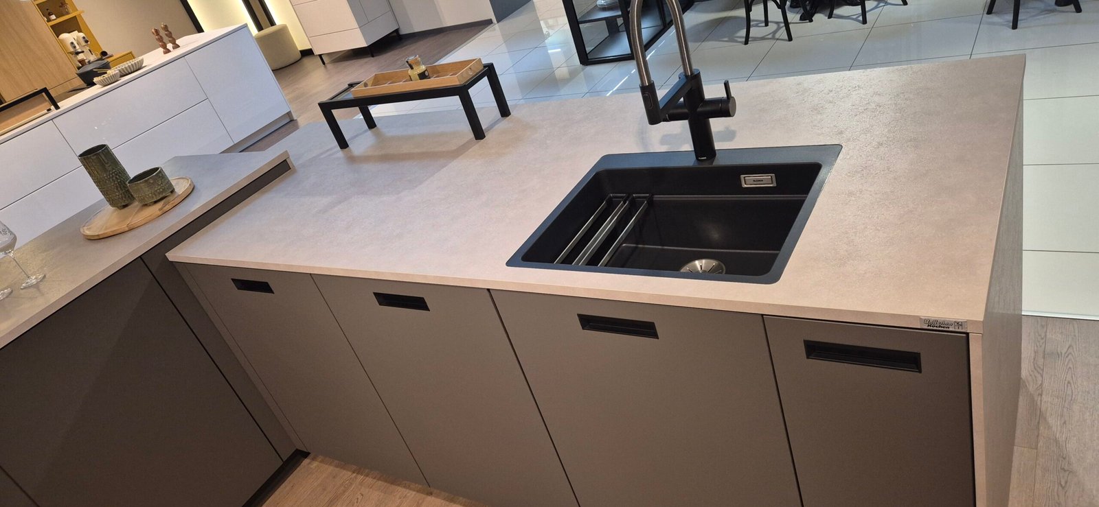 Diese Ausstellungsküche wurde in Hannover präsentiert und zeigt aktuelle Trends im Premium-Küchendesign. Die Kombination aus moderner Ästhetik und funktionalen Details schafft eine perfekte Balance zwischen Design und Alltagstauglichkeit.