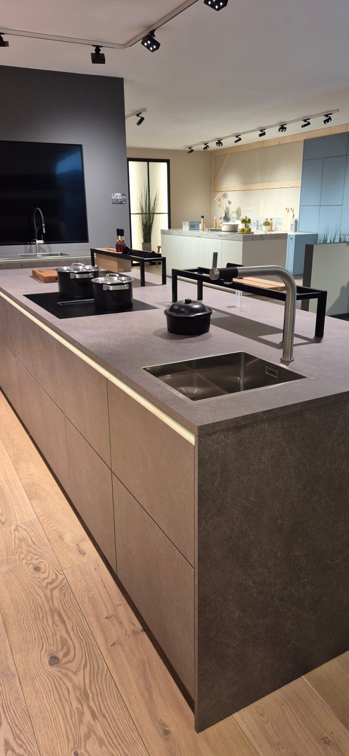 Diese Ausstellungsküche wurde in Hannover präsentiert und zeigt aktuelle Trends im Premium-Küchendesign. Die Kombination aus moderner Ästhetik und funktionalen Details sorgt für eine harmonische Atmosphäre und höchsten Komfort im Alltag.