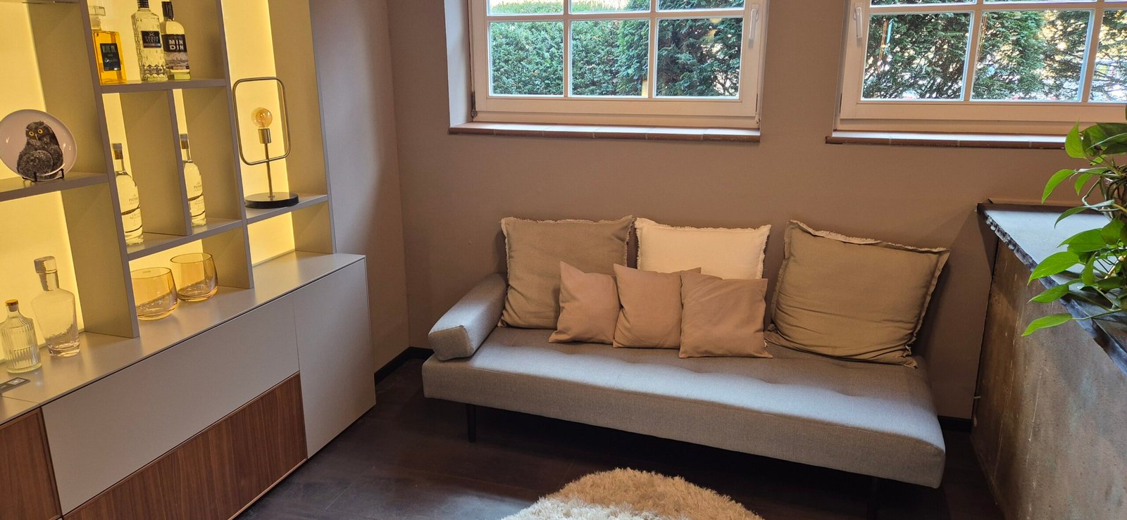 Die moderne Baufront Küche Paris Potsdam in Nussbaum kombiniert mit Greige überzeugt durch ihre warme und elegante Ausstrahlung. Die dunkle Nussbaum-Optik verleiht der Küche Tiefe und Charakter, während die Greige-Fronten für eine ruhige und zeitlose Basis sorgen.