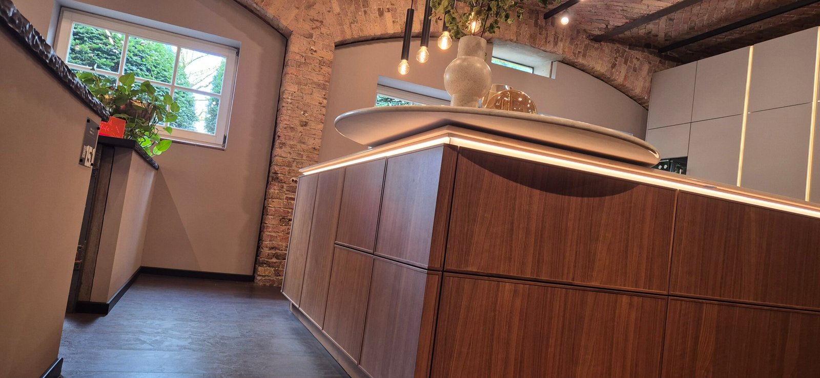 Baufront Küche Paris Potsdam Nussbaum Greige – Ausstellung Hannover